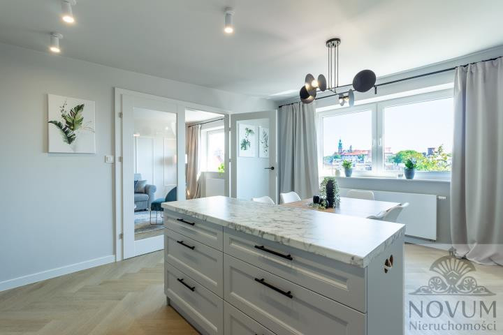 Przepiękna, nowoczesna 83 metrowa mansarda spełni marzenia wielbicieli niepowtarzalnych i wygodnych wnętrz : salon z widokiem za wawelskie wzgórze połączony pięknymi szklanymi drzwiami z dużą kuchnia i jadalnią. Wyposażenia oraz umeblowanie kuchni wraz z pojemną spiżarką zaspokoi potrzeby domowych kucharzy. Dwie duże sypialnie - jedna z garderobą , w których okna wychodzą na zielone podwórko umożliwi spokojny sen w centrum miasta. Wygodna, nowoczesna łazienka, dodatkowa garderoba dopełniają to komfortowe mieszkanie. Wyposażone w klimatyzację.