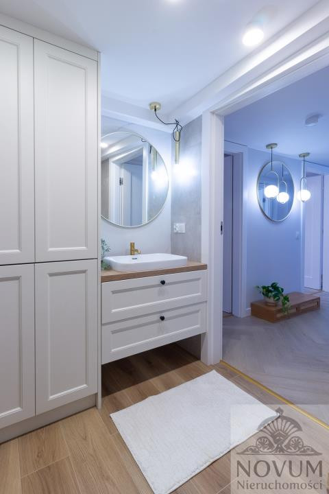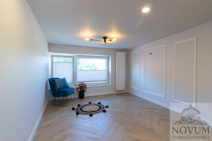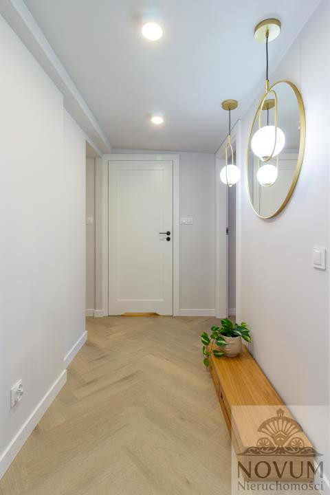 Umeblowanie w pokojach, kuchni oraz łazience i holu widoczne na zdjęciach.